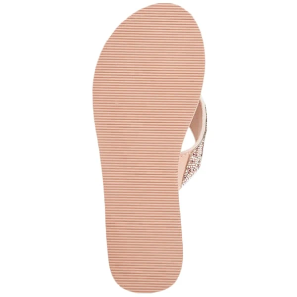 These Olivia Miller wedge flip flops feature a fashionable upper, between-the-toe thong design, and an elevated heel.