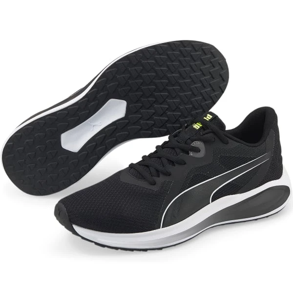 Go hard or go home in the power performance Twitch Runner. Modelled after PUMA’s celebrated Velocity Nitro, the Twitch Runner boasts clean lines and slick design detail. A bold paint line highlights the cushioned tooling while the mono mesh upper material is breathable and comfortable during both speed and endurance runs. A zoned rubber outsole creates durability and traction clout when you need it, and the midfoot is locked down with internal structural support, which, when combined with the plush SOFTFOAM +, offers a high-comfort ride.
