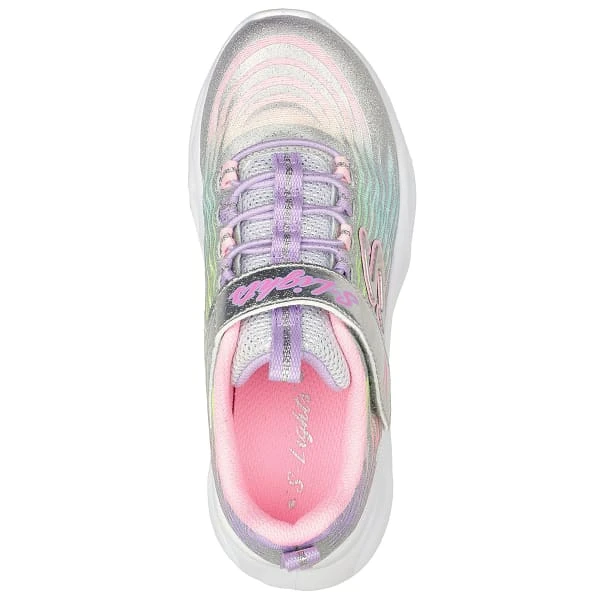 Dazzle your steps in style and comfort with Skechers S Lights: Twisty Brights – Mystical Bliss. This casual lightweight slip-on features a mesh and glitter synthetic upper with a light-up midsole.