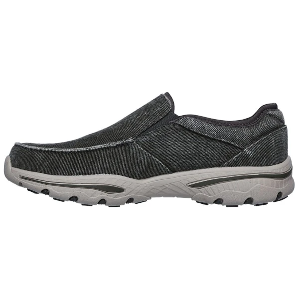 Canvas means comfort and laid-back cool style in the SKECHERS Relaxed Fit: Creston – Moseco shoe. Soft woven canvas fabric upper in a slip on casual comfort loafer moc with stitching and overlay accents.