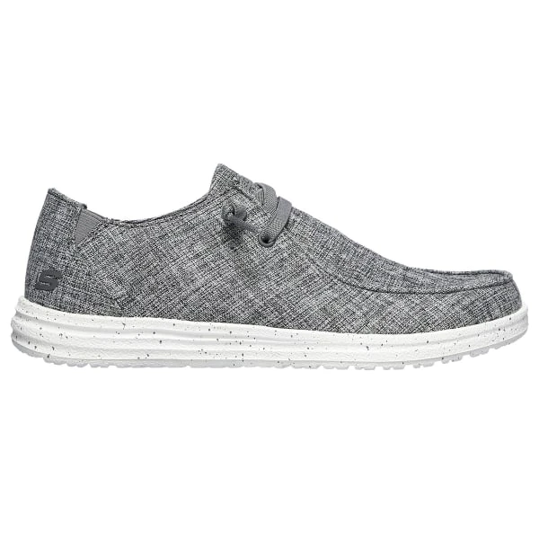 Find an even more laid-back setting for your style with soft comfort in the SKECHERS Relaxed Fit: Melson – Chad shoe. Soft woven heathered mesh fabric or smooth woven canvas fabric upper in a slip on stretch laced casual beach moc with stitching and overlay accents. Air Cooled Memory Foam insole.