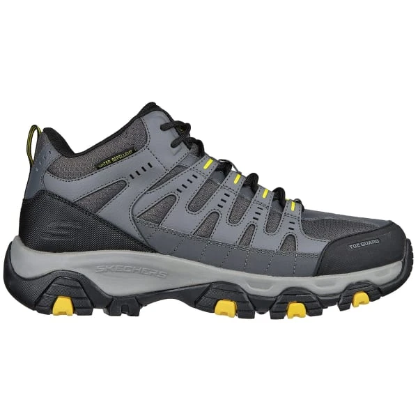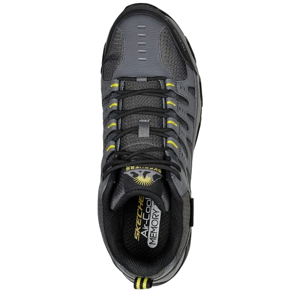 Explore the great outdoors in durable comfort with Skechers Terrabite. This lace-up water repellent trail design features a Scotchgard treated leather, synthetic and mesh upper with a Skechers Air-Cooled Memory Foam insole.
