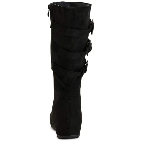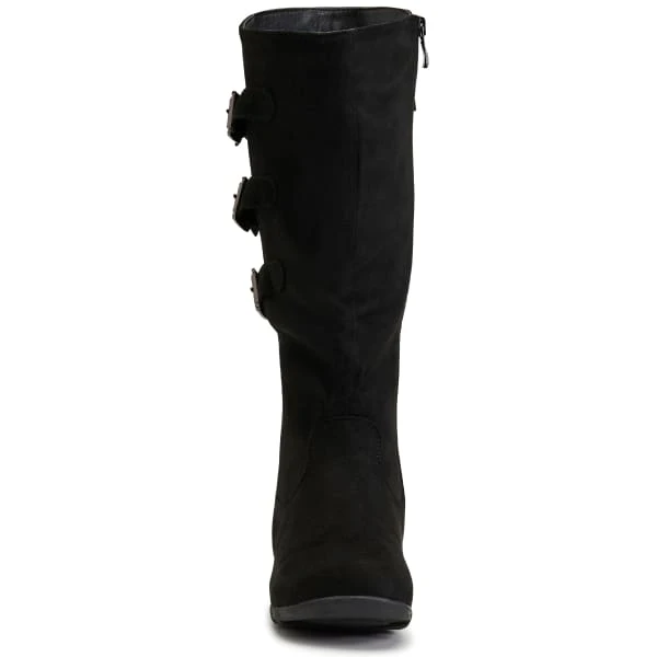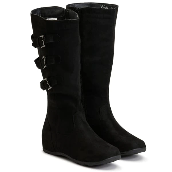 A tall boot with 3 buckles, the Sadler from Wanted Shoes dresses up a pair of jeans when the weather gets a little chilly.