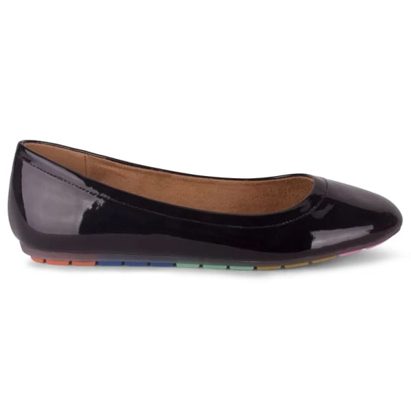 - Vegan patent upper and rainbow sole